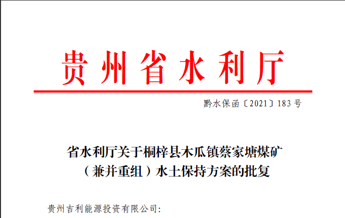 貴州吉利能源投資有限公司桐梓縣木瓜鎮蔡家塘煤礦(兼并重組)水土保持方案
