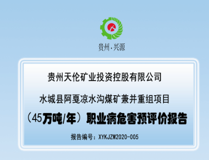 貴州天倫礦業投資控股有限公司 水城縣阿戛涼水溝煤礦兼并重組項目 (45萬噸/年)職業病危害預評價報告