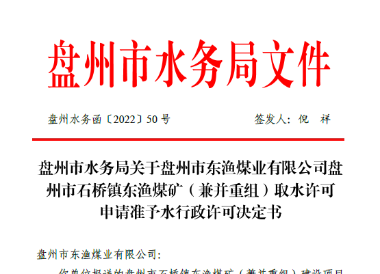 盤州市東漁煤業(yè)有限公司盤州市石橋鎮(zhèn)東漁煤礦(兼并重組)水資源論證報告