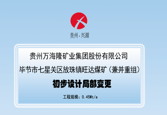 貴州萬海隆礦業集團股份有限公司 畢節市七星關區放珠鎮旺達煤礦(兼并重組) 初步設計局部變更