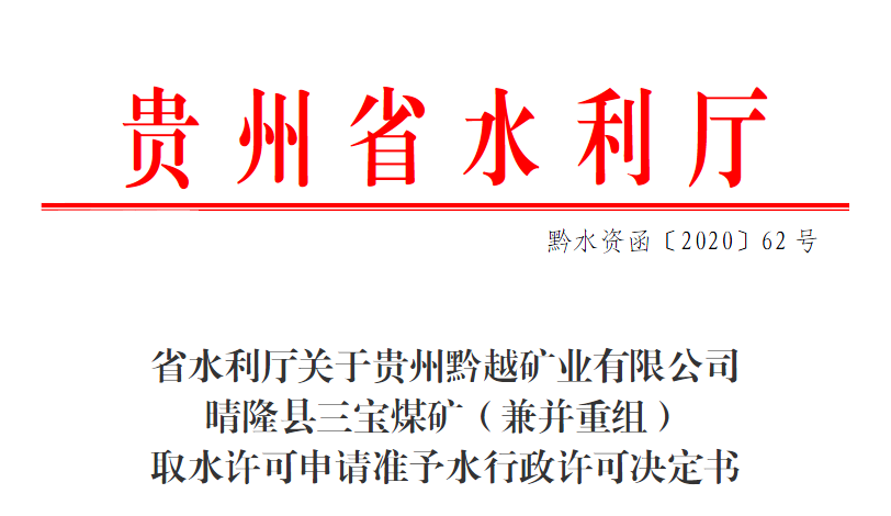 貴州黔越礦業有限公司晴隆縣 三寶煤礦(兼并重組) 水資源論證報告