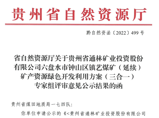 六盤水市鐘山區(qū)鎮(zhèn)藝煤礦(延續(xù))礦產資源綠色開發(fā)利用方案(三合一)