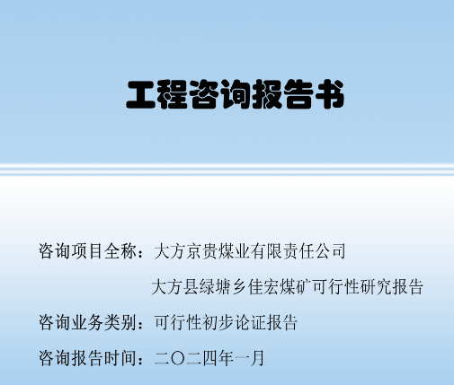 大方京貴煤業(yè)有限責任公司大方縣綠塘鄉(xiāng)佳宏煤礦可行性研究報告