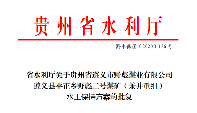 貴州省遵義市野彪煤業有限公司遵義縣平正鄉野彪二號煤礦 (兼并重組)