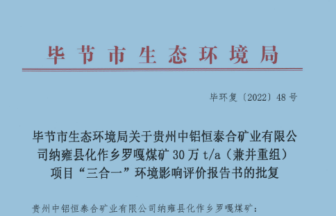 納雍縣化作鄉羅嘎煤礦(兼并重組)項目“三合一”環境影響報告