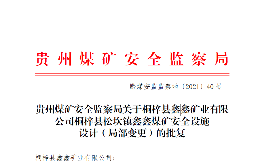 桐梓縣松坎鎮(zhèn)鑫鑫煤礦安全設(shè)施設(shè)計(局部變更)
