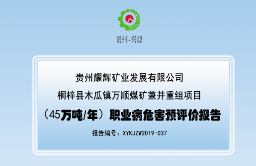 桐梓縣木瓜鎮萬順煤礦兼并重組項目 (45萬噸/年)職業病危害預評價報告
