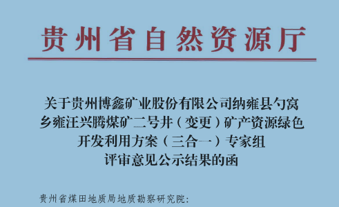納雍縣勺窩鄉雍汪興騰煤礦二號井(變更) 礦產資源綠色開發利用方案(三合一)