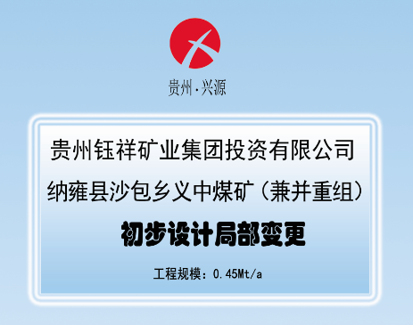 納雍縣沙包鄉義中煤礦(兼并重組)初步設計局部變更
