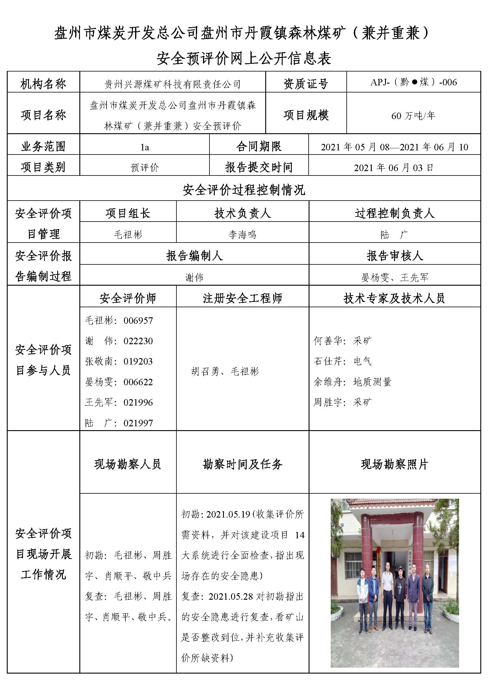 盤州市煤炭開發(fā)總公司盤州市丹霞鎮(zhèn)森林煤礦(兼并重兼)安全預(yù)評(píng)價(jià)網(wǎng)上公開信息表