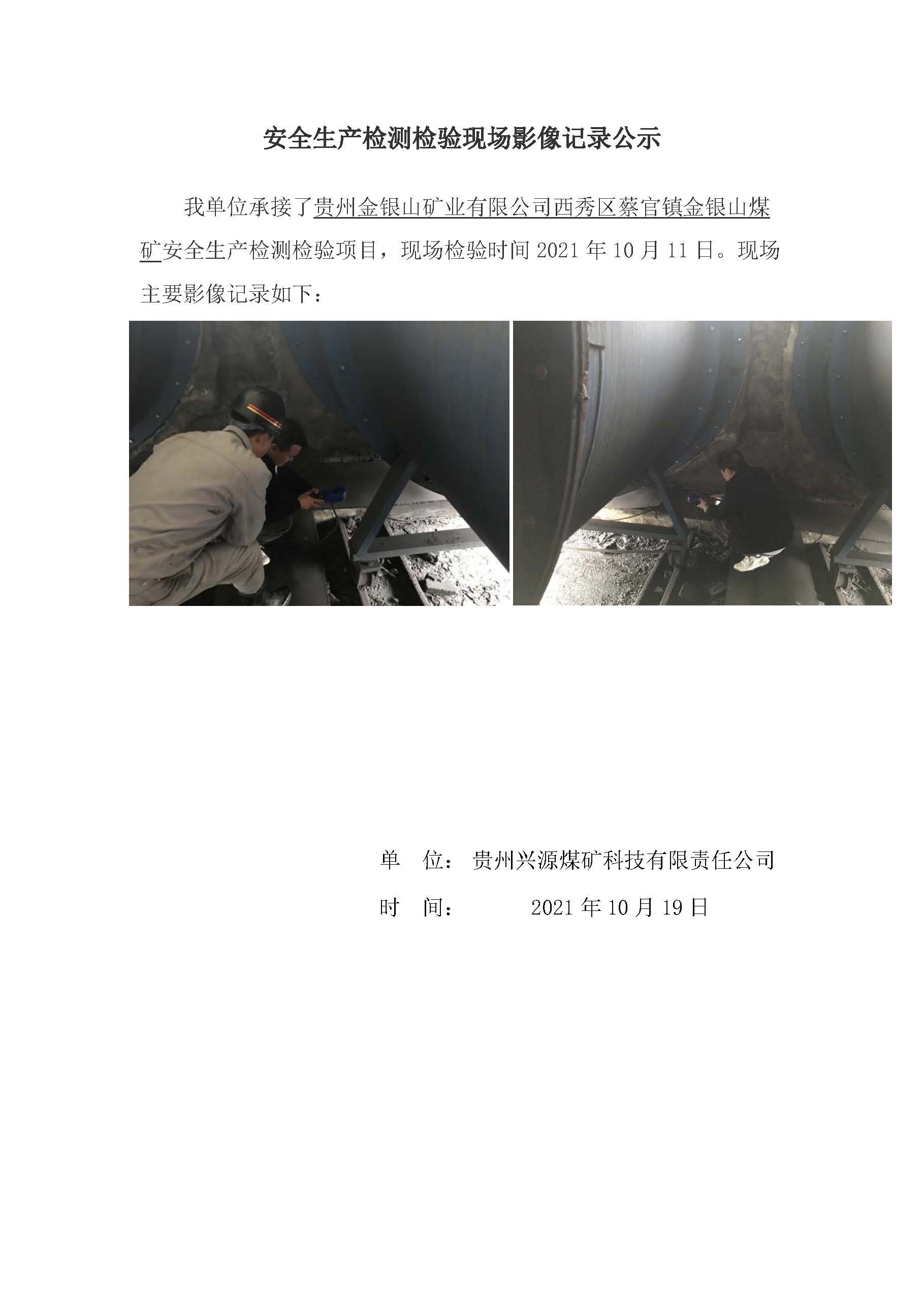 安全生產檢測檢驗現場影像記錄公示【貴州金銀山礦業有限公司西秀區蔡官鎮金銀山煤礦】