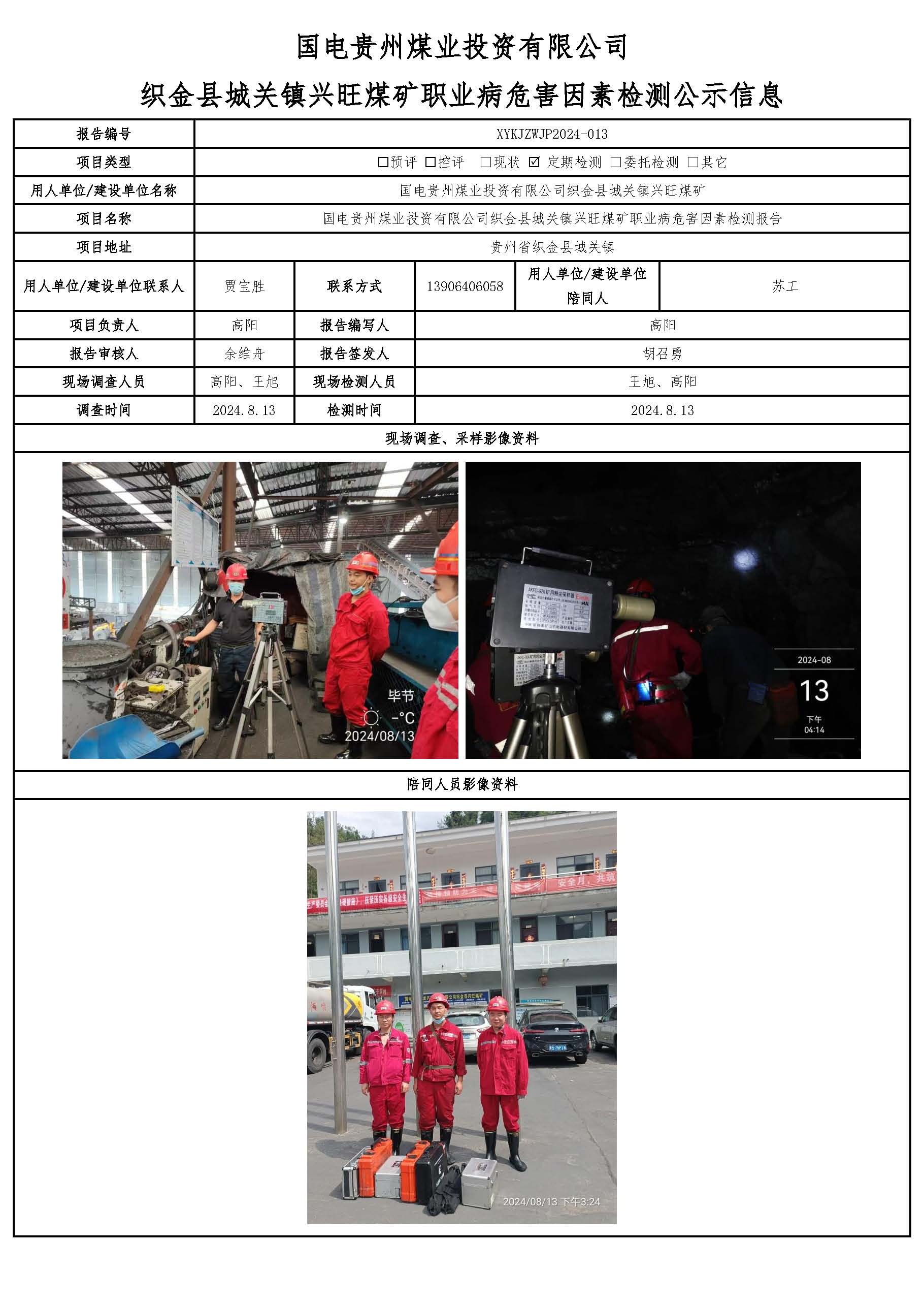 國電貴州煤業(yè)投資有限公司織金縣城關鎮(zhèn)興旺煤礦職業(yè)病危害因素檢測公示信息
