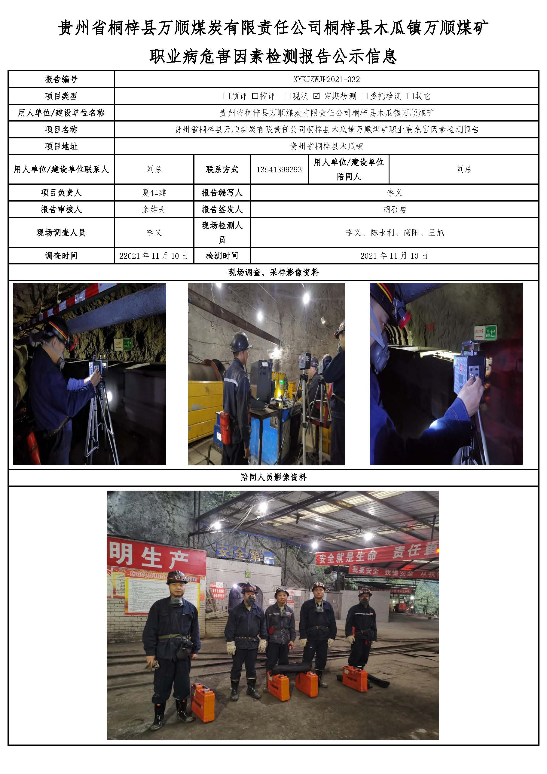 貴州省桐梓縣萬順煤炭有限責(zé)任公司桐梓縣木瓜鎮(zhèn)萬順煤礦 職業(yè)病危害因素檢測報告公示信息