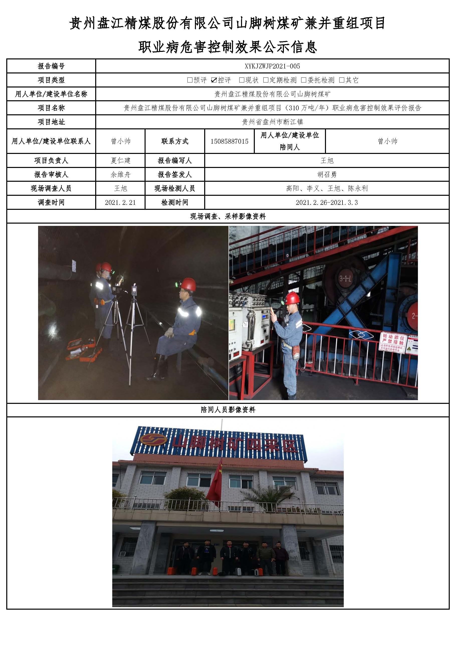 貴州盤江精煤股份有限公司山腳樹煤礦兼并重組項目 職業(yè)病危害控制效果公示信息