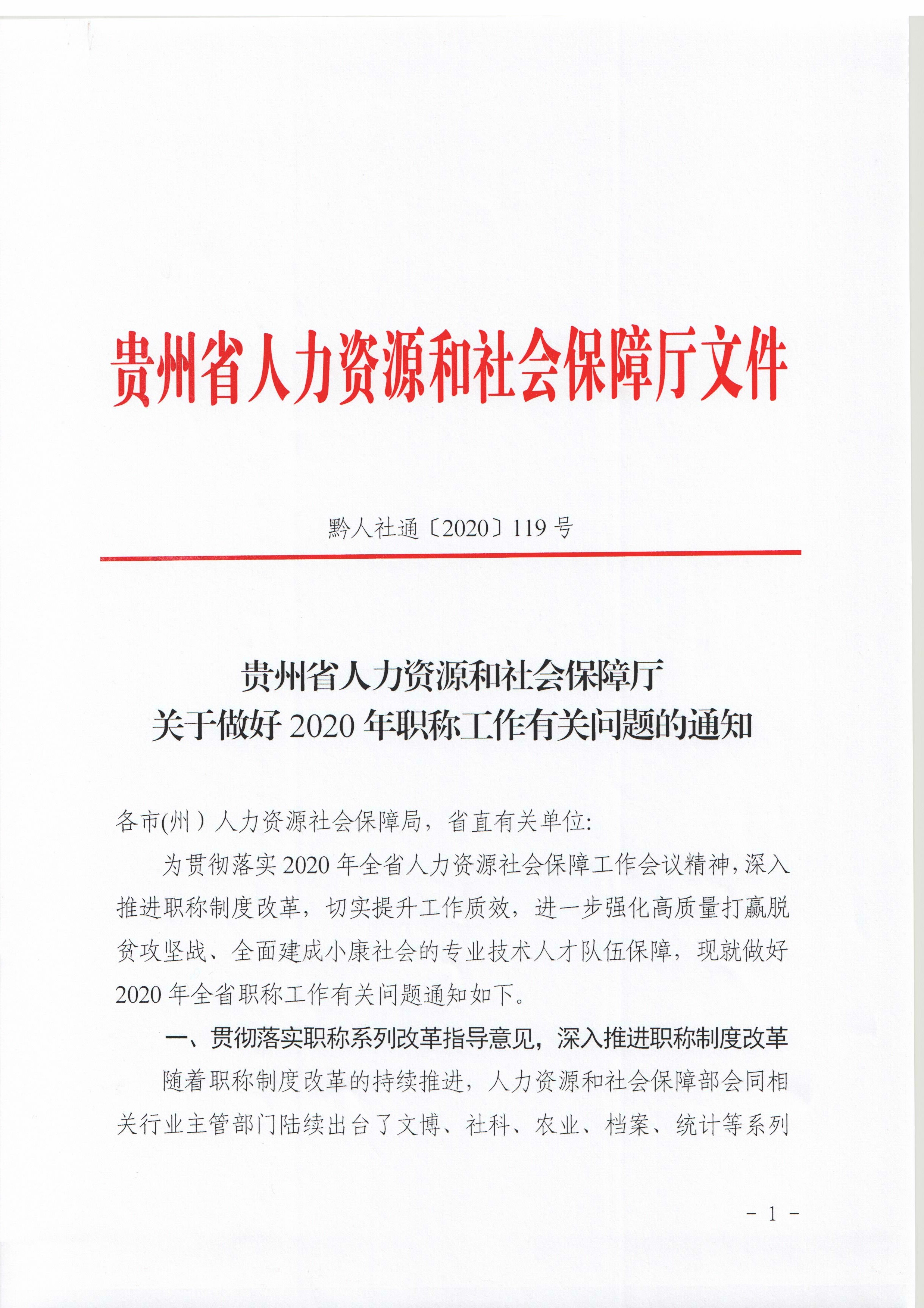 貴州省人力資源和社會保障廳關于做好2020年職稱工作有關問題的通知