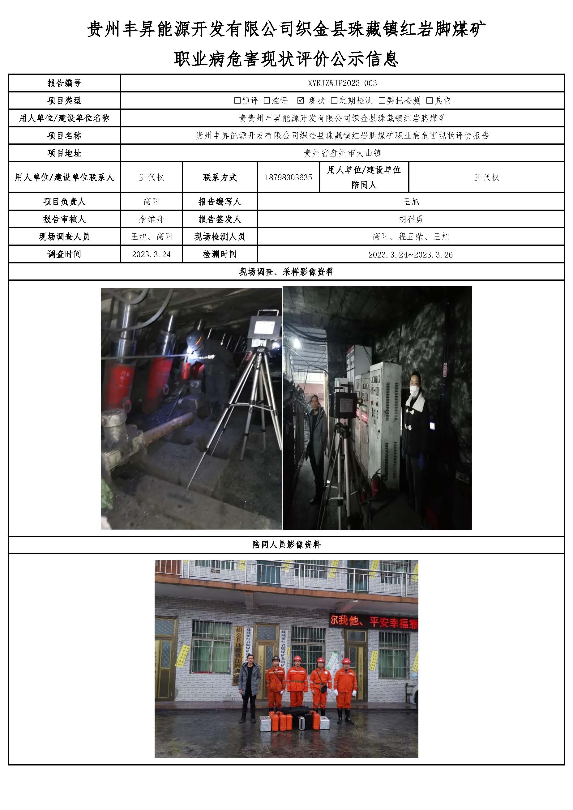 貴州豐昇能源開發有限公司織金縣珠藏鎮紅巖腳煤礦 職業病危害現狀評價公示信息